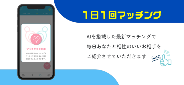 【待ってるだけでマッチング】AIが相性のいい相手を、毎日ご紹介!「Good」でこちらからアプローチも可能な出会いアプリです!