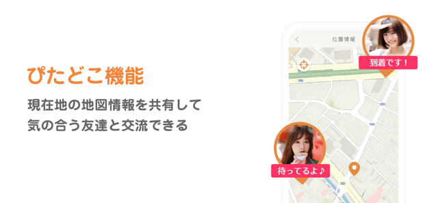 「ぴたっと」は、気になる話題をチャットで語り合ったり、今居る地図情報を共有してオススメスポットを紹介したり、アプリの機能を使って気の合う友達と交流できる最新アプリです
