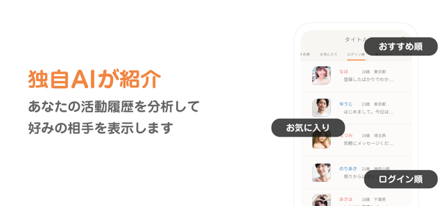 ぴたっとでは活動履歴やプロフィール情報などを元に、ぴたっとの独自アナリティクス機能で、あなたにピッタリのユーザーをご紹介します。プロフィールは空のままにしたり間違った記載をしないように気をつけて頂き、時々更新することで、よりピッタリなお友達がご紹介できるようになります。